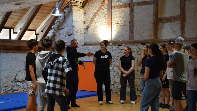 Ein kurzer Aufschrei. Zwei Körper wirbeln durcheinander. Ein Schüler stürzt dramatisch auf den Boden und steht danach lachend wieder auf. Was wie ein echter Streit aussieht, ist in Wahrheit genau geplant. Im Bühnenkampf-Atelier auf Schloss Waldegg wird Theater zu Action.