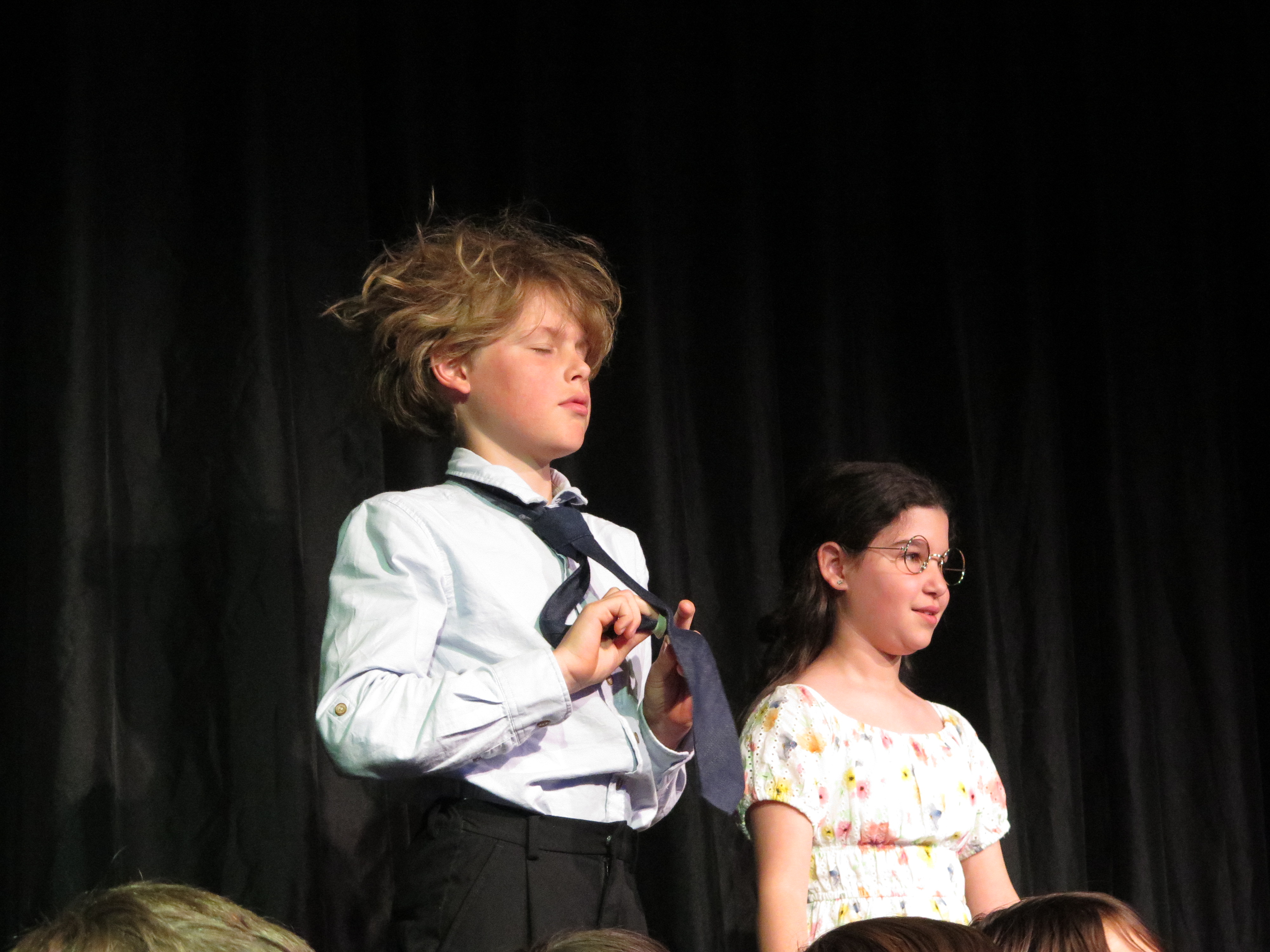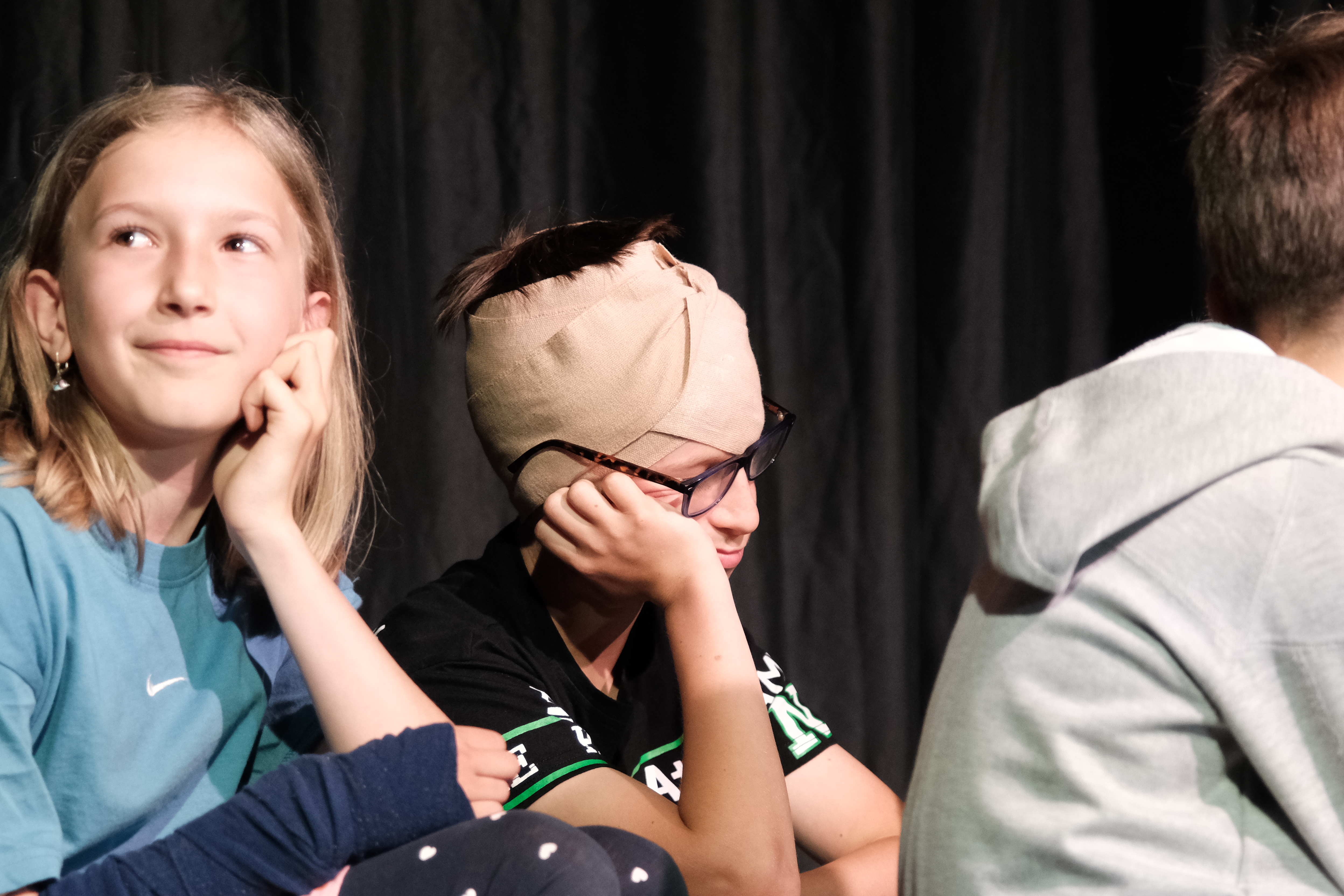 Mit viel Engagement ging die 4. Klasse aus Bellach mit Klassenlehrerin Vjosa Berisha am Donnerstagnachmittag als erste auf die Bühne. Die Theaterpädagogin, welche die jungen Schauspieler:innen im Vorfeld begleitet hat, machte jeweils auch die Ansage. Der Raum war gefüllt mit Geplapper und erwartungsvollen Gesichtern. Dann öffnete sich der Vorhang und das Stück begann.