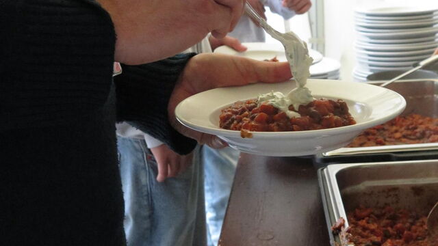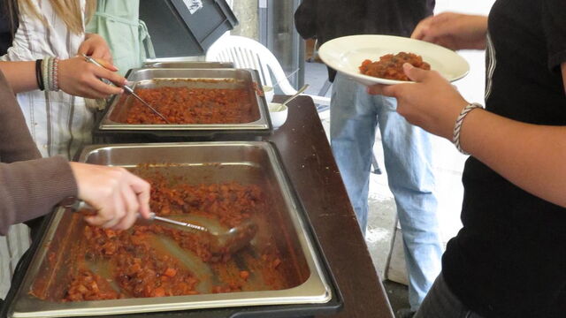 Dann der Moment: «Das Essen ist bereit!», ruft Ralf Harder, der Leiter der Schultheaterwoche, durchs Mikrofon. Es hallt durchs ganze Schloss. Innerhalb weniger Minuten bilde sich eine Schlange. Die Teller werden gefüllt, die Stimmung ist fröhlich.