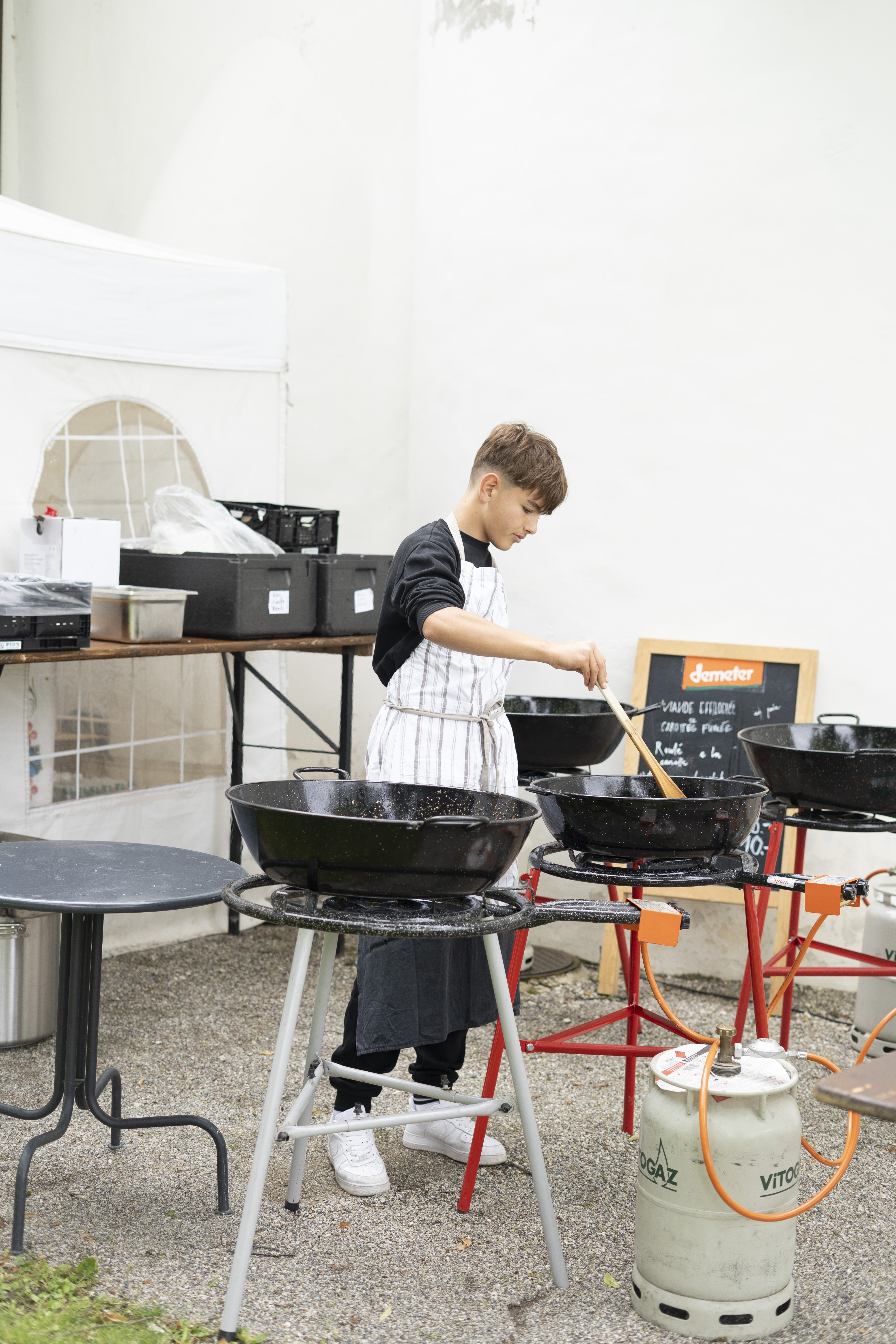 Pablo Bobrik führt sie durch den Ablauf. Ohne Hektik, aber mit klarer Ansage. Und während draussen in den Ateliers noch gekämpft, gespielt oder geprobt wird, steigt draussen der Duft von frisch Gekochtem auf. Die Jungs sind mittendrin – und wachsen mit jeder Minute in ihre Rolle als Küchencrew hinein.