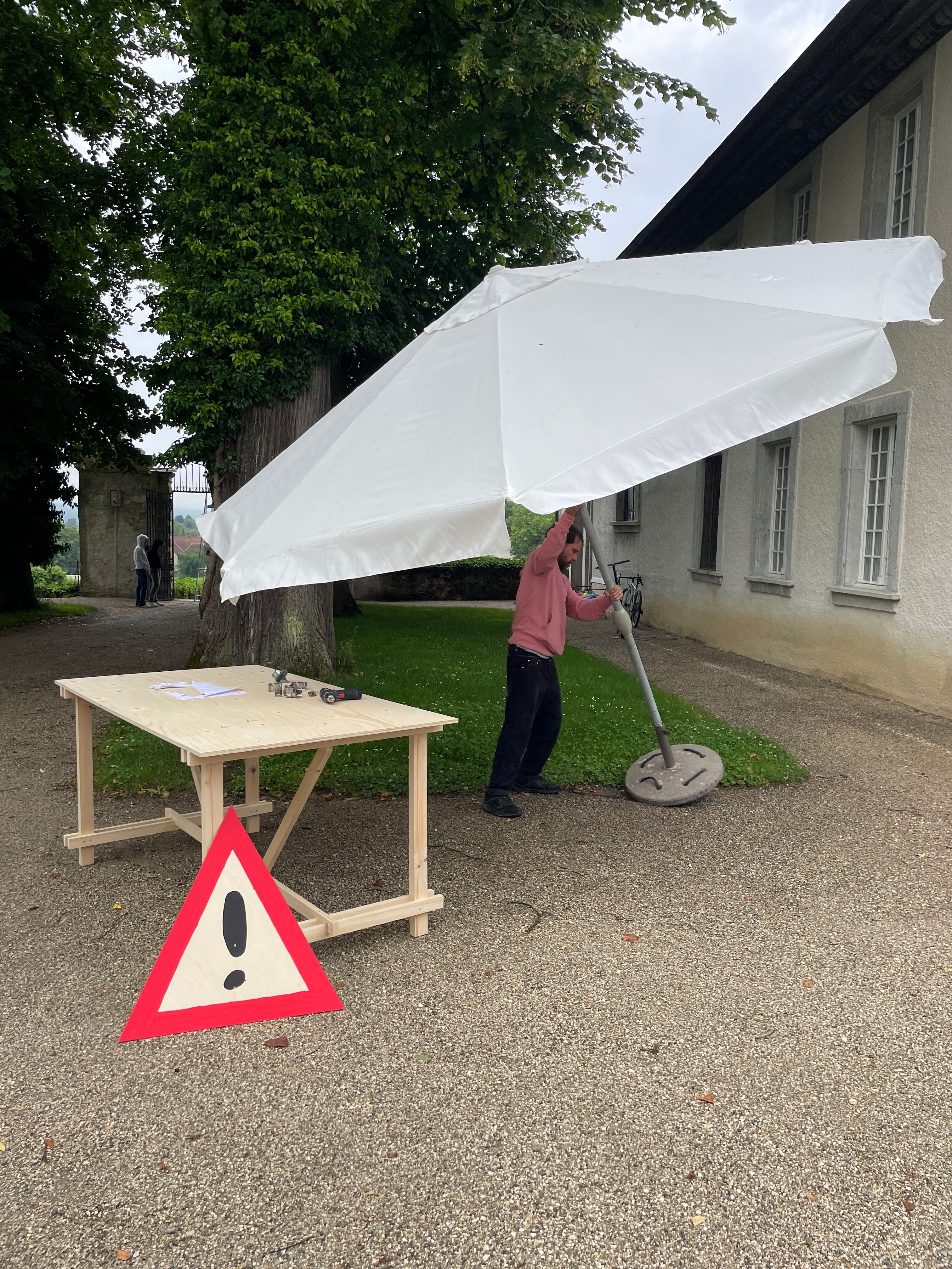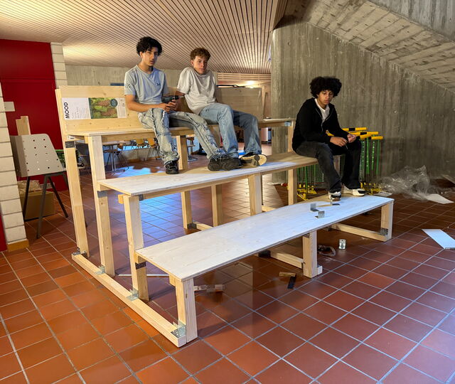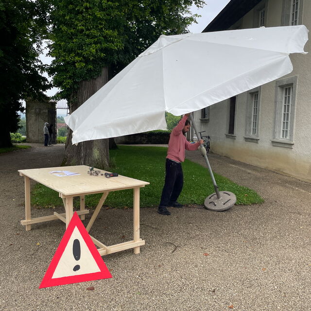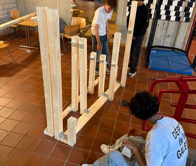Eine «Atelierklasse», unter der Leitung von Michael Curiger, Gergana Mantscheva und Eveline Anderegg, setzte sich aus Schüler:innen mehrerer Klassen zusammen, die in einem rund 8-wöchigen Projektkurs gemeinsam die unterschiedlichsten Sachen gebaut und konzipiert haben: Eine Gruppe konzipierte den Crèpestand und machte dort am Donnerstag und Freitag für die vielen hungrigen Gäste zum Zvieri leckere Crèpes mit diversen Toppings. Zusätzlich hat eine Gruppe Wegweiser und andere Schilder hergestellt - und eine weitere hat aus Holz eine kleine Tribüne hergestellt.