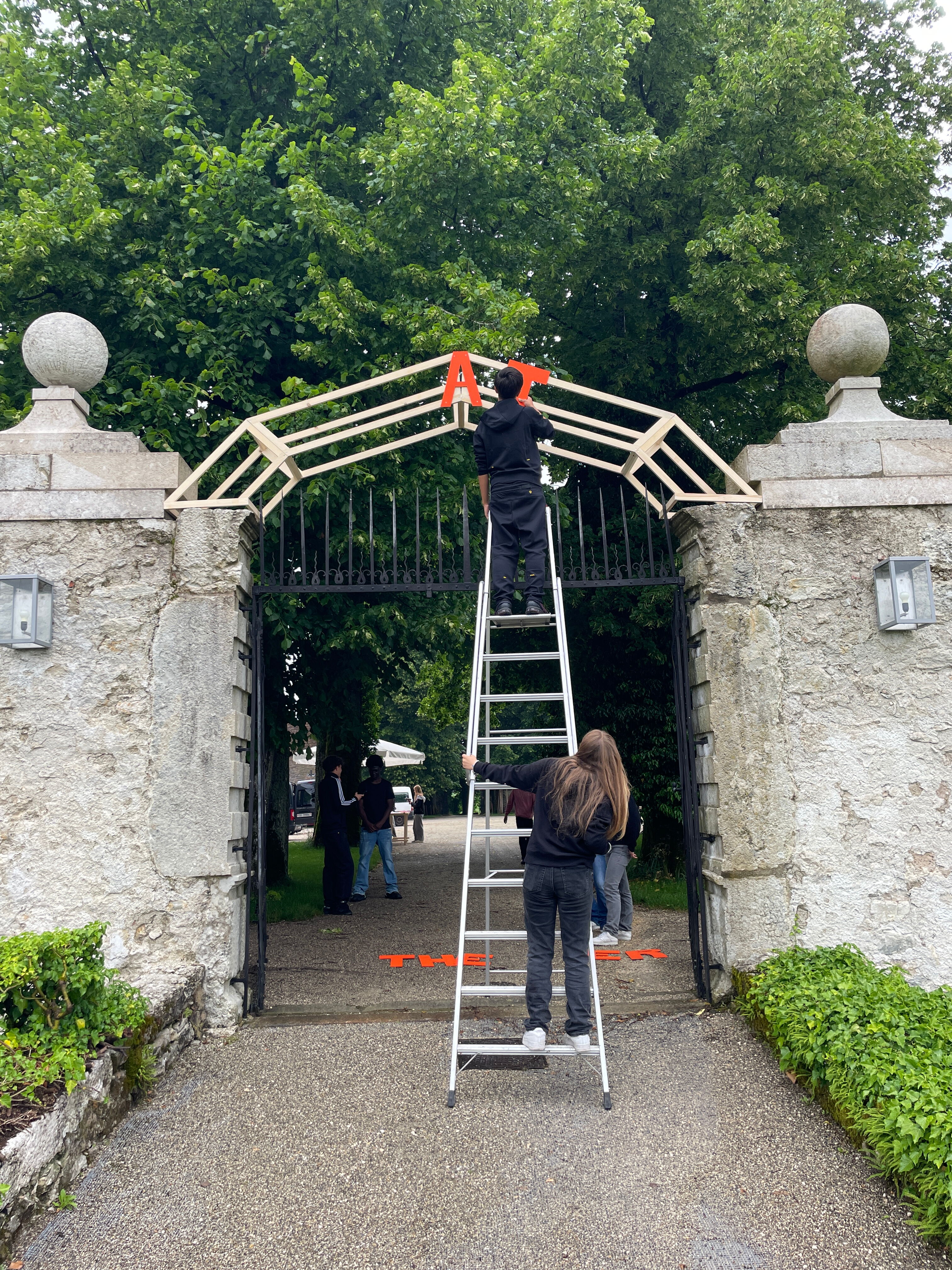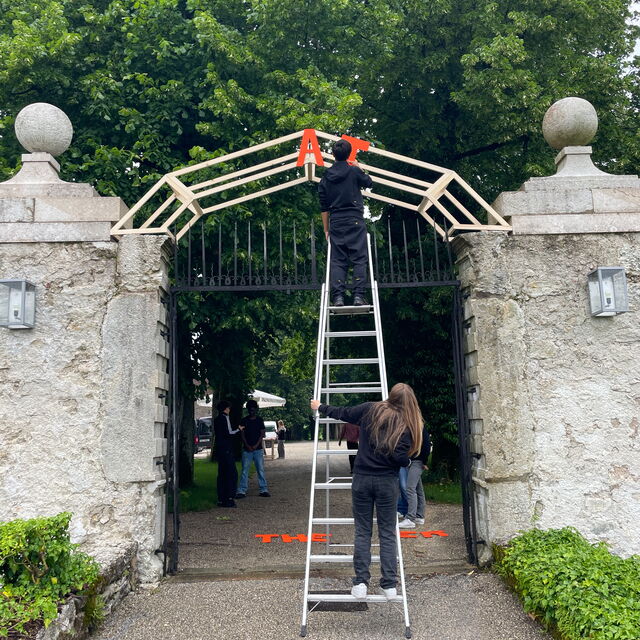 Ebenfalls im Einsatz stand die Talentförderklasse Sport von Lorenzo Salafia (Stellvertreter). Die Schüler:innen haben den Portalbogen über dem Eingang und den Infostand gemacht - und sie haben in der Festivalküche das Zmittag gekocht (siehe Beitrag Festivalküche).