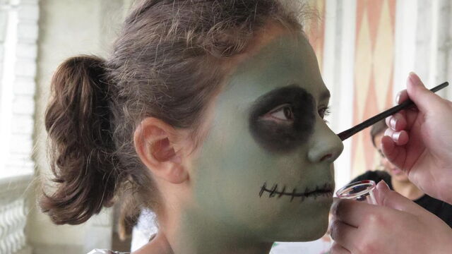 Im Atelier «Theaterschminken» schminken sich die teilnehmenden Kinder gegenseitig. Mit Farben und Fantasie machen sie sich zu Monstern. Am Ende sehen sie ganz anders und zum Teil richtig gruselig aus!