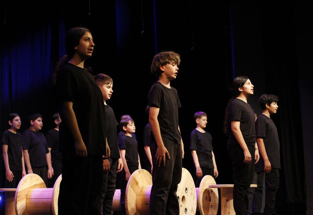 Im November hat die 6. Klasse aus Dulliken mit den Proben angefangen. Ihre Lehrerin Gabi Schenker hat ihnen neun Kabeltrommeln in die Turnhalle gestellt und gesagt: «Macht mal. Was könnten diese Kabeltrommeln sein?»