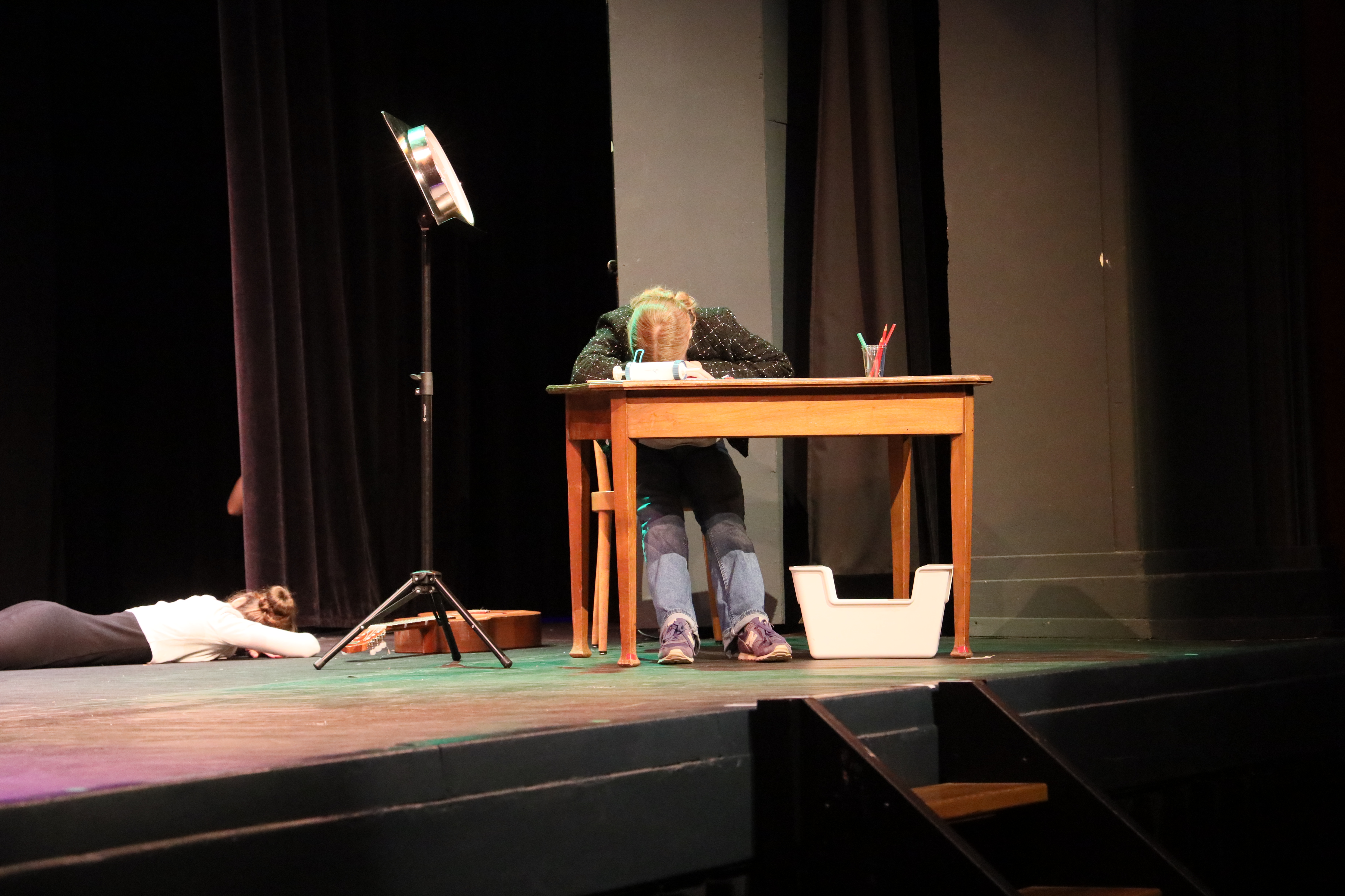 «Zeit ist Leben. Leben ist Zeit» Mit diesen Worten kündigte die Theaterpädagogin Martina Mercatali das Stück «Der Zeitdiebstahl» des Theaterfreikurs der Sekundarschule Solothurn unter der Leitung von Mirco Koch und Dinah Stöckli an. Das Stück startet mit drei Mädchen, denen langweilig ist und nicht wissen, was sie tun sollen. Sie beschliessen den Film «Zeitdiebe» zu schauen. Auf der Suche nach neuen Opfern entführen die Angestellten der Bank die Drei in den Film und stehlen ihnen ihre Lebenszeit.
